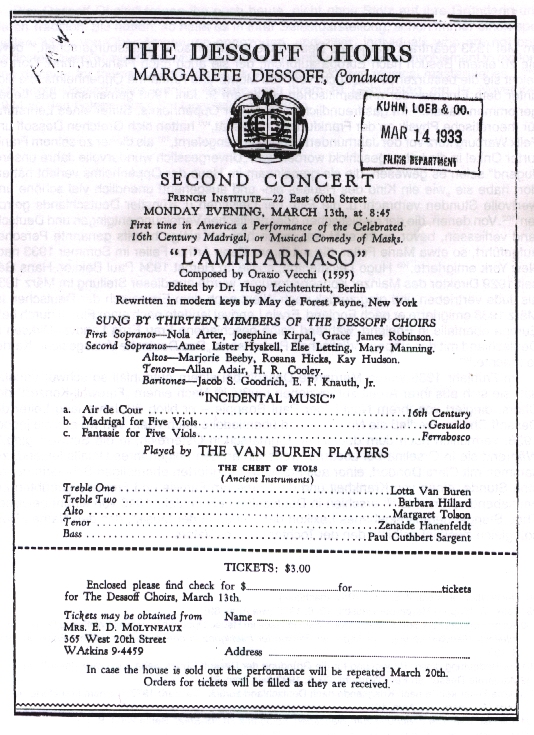 the concert. A group of madrigals from Dessoff's first madrigal concert