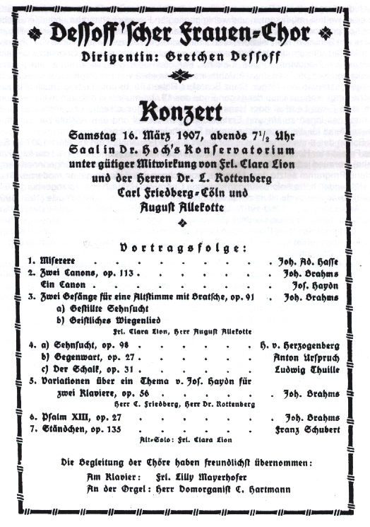 März 1907 im Saal des Konservatoriums statt. Margarete Dessoff