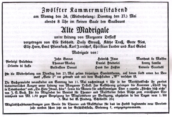 Frau Dessoff aufgeführt: aus dem ersten Programm ihrer